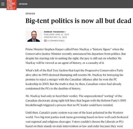 Media coverage: Big-tent politics is now all but dead